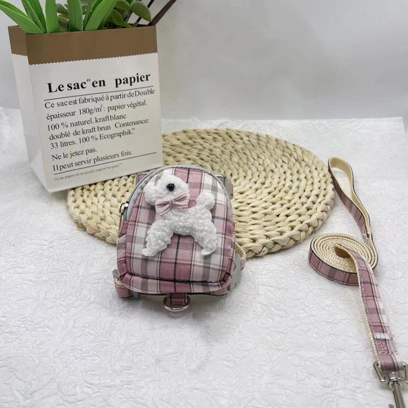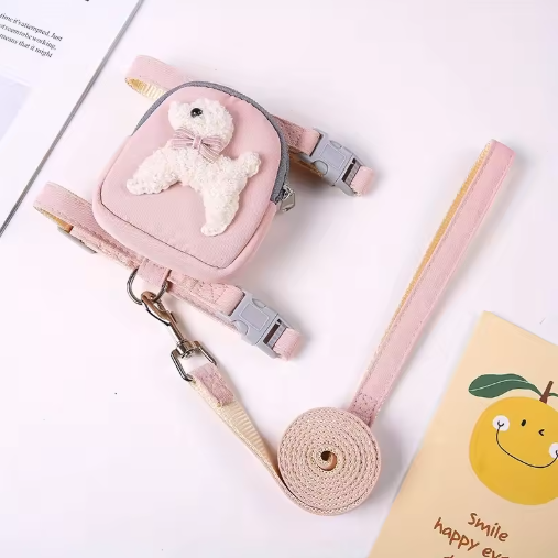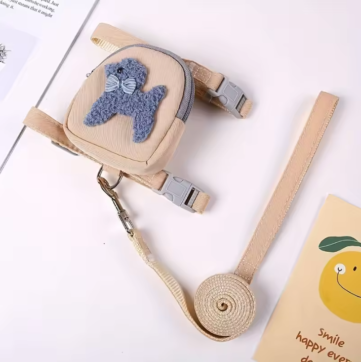 For pets who love a touch of adventure, The Explorer Walk Set pairs a charming harness and matching leash with a functional mini backpack - perfect for carrying treats or tiny essentials. Each backpack features an adorable fluffy dog with a bowtie for extra personality.