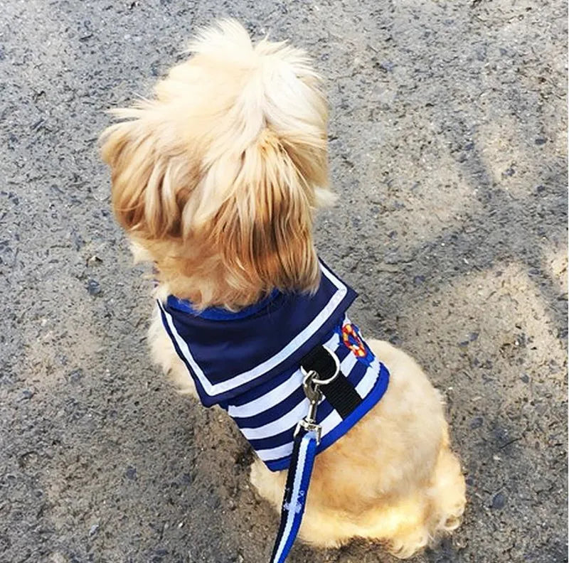 Set sail in timeless style with The Little Sailor Walk Set - a matching harness and leash duo inspired by classic sailor uniforms. Soft, breathable, and irresistibly charming, it's designed for pets who love to stroll in style.